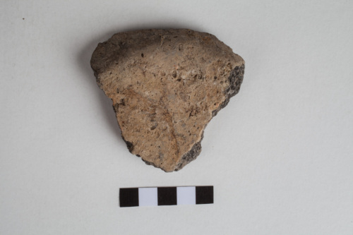 frammento di parete caratterizzata da un cordone liscio applicato; impasto grossolano, superfici lisciate di colore beige-arancio (esterna e interna)