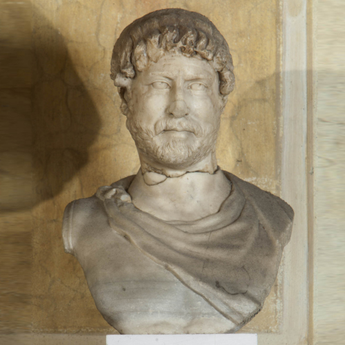 Il ritratto raffigura un volto maschile dall'ovale pieno, in cui la fronte, stretta e di forma semicircolare, è incisa da lievi solchi paralleli a rendere lunghe rughe dovute all'età matura dell'uomo. L'espressione del viso è decisa, volitiva, accentuata dalle arcate soppraccigliari profonde e dai grandi occhi, in cui iride e pupilla sono disegnati: la pupilla è resa mediante due fori, grazie all'utilizzo del trapano. Il naso è diritto e sostanzialmente regolare, sebbene il setto nasale si allarghi un poco nella zona mediana. La bocca dalle labbra sottili si intravvede appena: essa è infatti sovrastata dai folti baffi e dalla barba resi con incisioni sottili a scalpello. L'acconciatura vede invece l'ampio utilizzo del trapano corrente, a rendere boccoli ondulati che dispongono regolari attorno al volto. Il retro è solo sbozzato e non ulteriormente rifinito.