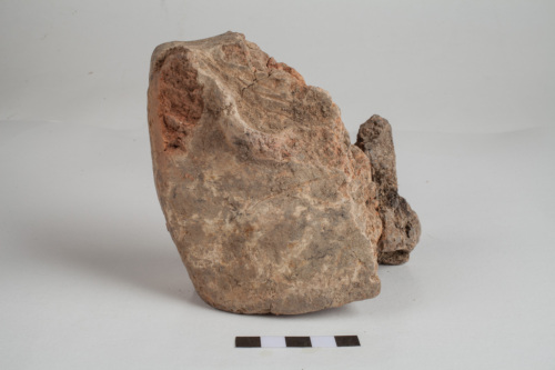 frammento di alare a mattonella con decorazione a rilievo; impasto mediamente depurato, superfici lisciate di colore paglierino