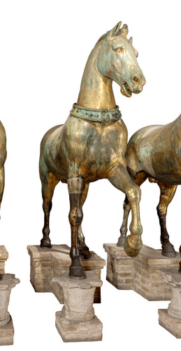 - NOTIZIE STORICO CRITICHE I cavalli furono presi a seguito della conquista di Bisanzio del 1204, durante la IV Crociata e inviati a Venezia dal doge Enrico Dandolo. Furono poi esposti sulla facciata della Basilica.