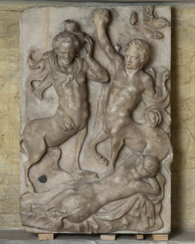 Il rilievo raffigura due centauri in posizione simmetrica che scoprono una centauressa dormiente sopra una roccia, alzando il braccio in gesto di meraviglia.