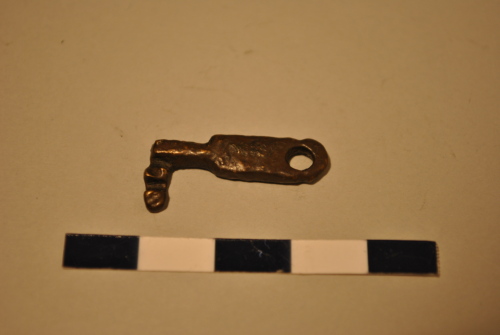 Chiave a scorrimento di piccolo formato, con anello poligonale. Stelo rettangolare con innesto a sezione rettangolare. Elemento trasversale a due denti.