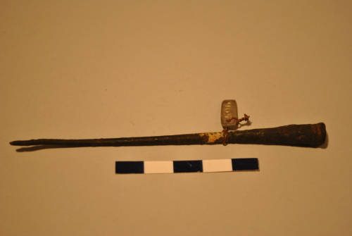 Strumento, probabilmente da vasaio, con stelo a sezione circolare, terminante da un lato a punta. Dall'altro lato lo stelo si allarga in un tronco di cono chiuso.