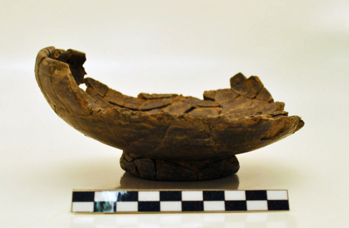 Ciotola/coperchio dellolla IG 12927 con orlo/bordo arrotondato, inflesso, sottolineato da una incisione orizzontale, pareti del corpo emisferiche, presa/piede ad anello a pareti oblique. L'argilla è di colore grigio.