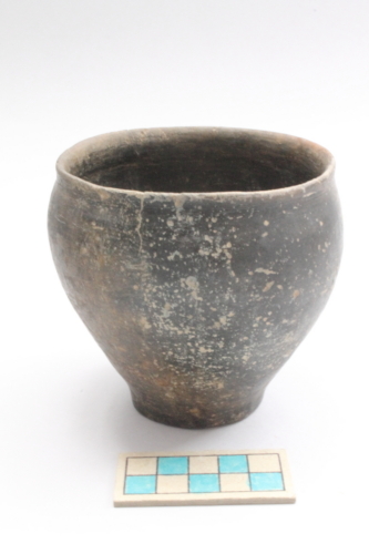 Il reperto presenta un piede a disco indistinto, corpo a profilo ovoidale, orlo leggermente estroflesso e labbro assottigliato.