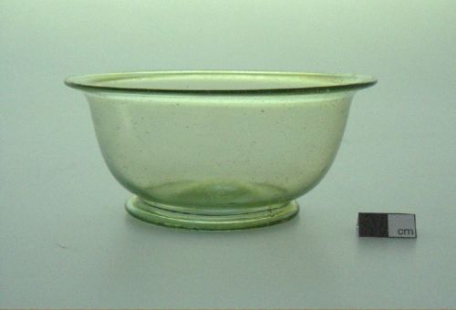 labbro esoverso arrotondato, corpo a pareti convesse, piede ad anello applicato; vetro verdolino, trasparente