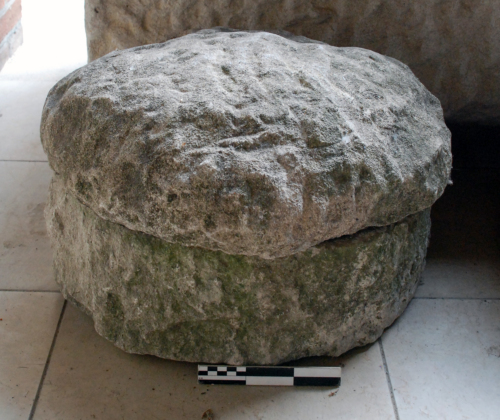 Urna cilindrica con bordo liscio lavorato a scalpello.