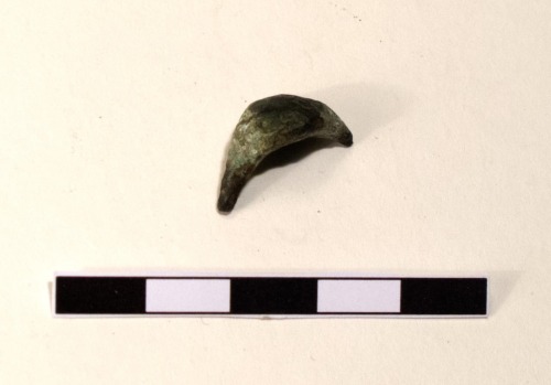 Anello digitale, a castone. Verga circolare appiattita di tipo semplice, che monta ingrossandosi verso un castone di tipo ovoidale, molto rovinato.