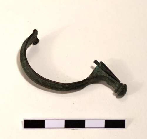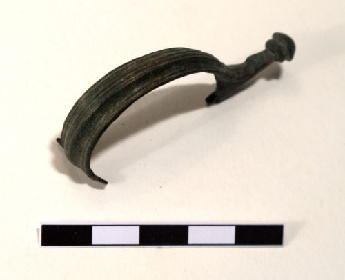 - OGGETTO fibula a cerniera fibula a cerniera decon arco a fettuccia assai rilevato. con decorazione a cordicella, tipo aucissa