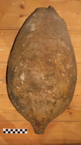 Anfora olearia tipo Dressel 6b, mancante di orlo, collo e anse. L'anfora Dressel 6b è caratteristica per l'orlo a calice, rotondo, leggermente estroflesso. La forma del corpo è ovoidale, e si conclude con un puntale pieno, con bottone di chiusura.