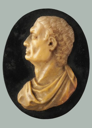L'oggetto è un modello in cera, usato da incisori di monete e medaglie e da intagliatori di pietre come studio preparatorio. Raffigura un busto maschile di profilo verso destra, caratterizzato da tratti marcati e dalla capigliatura, organizzata in una serie di file di ciocche ricurve, con un ricciolo che scende davanti all'orecchio lasciato scoperto. Attorno alla base del collo si dispone il panneggio della veste.