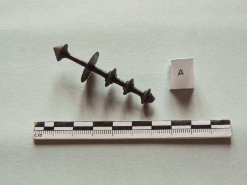 Frammento di spillone con capocchia ad ombrellino e serie di elementi discoidali; privo dell'ago.