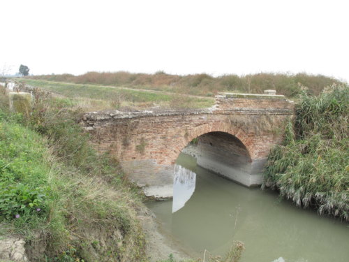 ponte in muratura continua a vista a canna ad arco a tutto sesto, pianta rettangolare con passaggio in terra, tracce di parapetto in muratura.