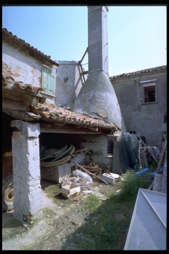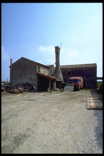 edificio di forma a L; muri perimetrali in mattoni intonacati; solai in legno; copertura a tetto a 2 falde; allincrocio tra i due corpi camino di forma tronco-conica; sul retro del corpo a Sud portico
