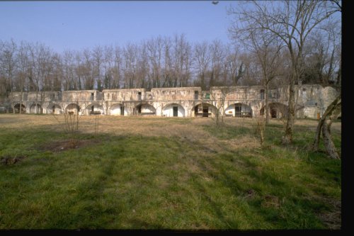 edificio costruito nel 1909 dallEsercito Italiano dopo aver demolito il vecchio forte austriaco del 1839; la postazione tuttora esistente è dotata di sei postazioni circolari dartiglieria poste sulla parte superiore, al primo piano; queste postazioni sono collegate tra loro da un corridoio scoperto che corre lungo la parte frontale superiore, poggiante su di una serie di arconi molto profondi a cui si accede da due scale poste alle estremità. Nel piano terra è una fila di locali collegati da un corridoio coperto con volta a botte, che aveva funzioni di deposito e riservette pee le postazioni sovrastanti.