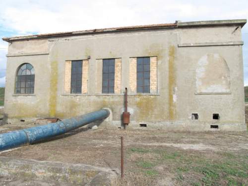 edificio a pianta rettangolare con murature continue in laterizio e a vista. Forometria centrale seriale regolare sul prospetto a monte e finestre arcuate agli esterni su entrambi i fronti lunghi; Solai piani e copertura principale a quattro falde in coppi di laterizio e copertura piana angolare per la cabina elettrica.