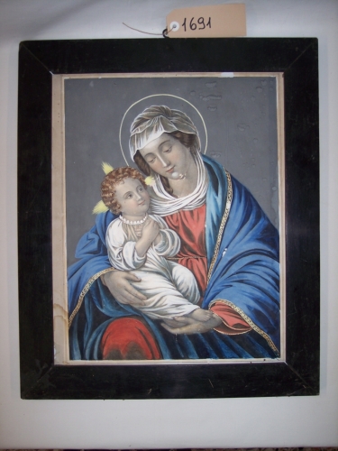 quadro con cornice in legno e vetro; dipinto ad acquerello su precedente stampa