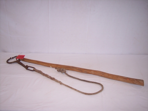oggetto costituito da un asta di legno terminante ad un'estremità con un oggetto in ferro costituito da un anello apribile, un manico ed un anello ovale al quale è annodata una corda di canapa intrecciata