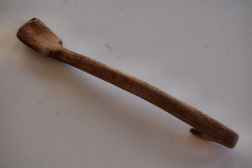 utensile in legno composto da un manico a sezione ovale, dotato allestremità di un uncino sporgente usato per appendere loggetto, e da una paletta appiattita di forma trapezoidale