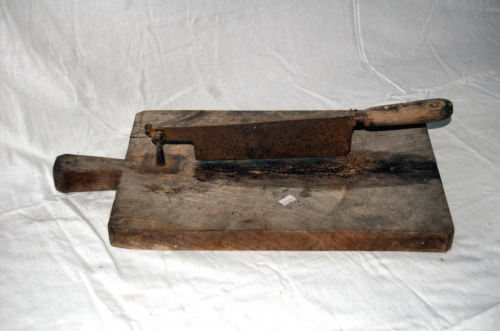 - FUNZIONE E MODALITÀ D'USO usato per tagliare il pane raffermo. La lama veniva usata come una leva ad un bracciolalimento, appoggiato sul tagliere, viene tagliato sollevando e abbassando la lama, impugnandone il manico in legno