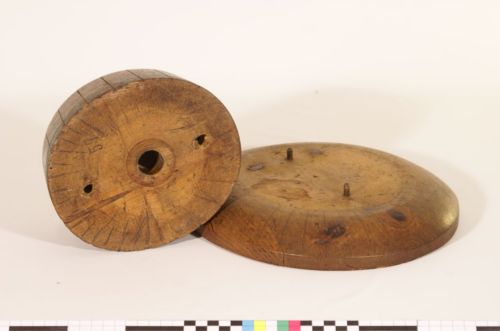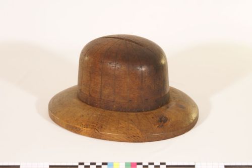 - FUNZIONE E MODALITÀ D'USO modellazione del cappello durante l'intrecciocalotta e ala, che devono corrispondere secondo la taglia, sono dotate di solchi incisi a raggiera che si dipartono dalla sommità della calotta fin sull'ala per tracciare l'ordito dell'intreccio. Il cappello viene intrecciato sulla forma, i fili di paglia fissati con spilli sulla sommità.Un foro nella parte inferiore permette di infilzarla su un palo di sostegno detto #omo#. Le forme per cappelli, oltreché venire utilizzate nelle fabbriche e nei laboratori, erano date in comodato d'uso alle lavoranti a domicilio