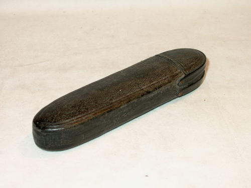Astuccio in cartapesta di forma ogivale con terminale basculante. Può contenere due paia di occhiali.