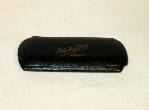 L'astuccio, con l'anima in metallo, è ricoperto con pelle colorata in nero. L'interno è foderato in velluto bleu. Nella parte superiore l'impressione: E.Wyndham Nettich / D.B.O.A., F.I.O. / Jersey.