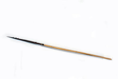 Lancia con la punta in legno di palma e tre punte sporgenti. Il bastone è realizzato con la pianta di bambù. Le armi tradizionali per la guerra in melanesia erano archi e frecce, lance e club. Gli archi erano di legno, a volte di bambù e la corda fatta di fibre vegetali intrecciate. Questa lancia è tipica della Nuova Guinea dove le punte di lancia (anche per le frecce di guerra) erano molto pungenti e sporgenti in modo tale da non poter essere rimosse dal nemico. Rif. Bibliografia: Cranstone, B.A.L.: Melanesia. A Short Ethnography (Londen: The Trustees of the British Museum, 1961) pp.19,21,62 Feest, C.: The Art of War (Londen: Thames & Hudson, 1981) pp.39,43 Frobenius, L.: Die Bogen der Oceanier. Naturwissenschaftliche Abhandlungen vol. 28 (1901) p.29 Grayson, C.E., M. French en M.J. O'Brien: Traditional Archery from Six Continents. The Charles E. Grayson Collection (Columbia: University of Missouri Press, 2007) p. 126 Ivens, W.G.: Melanesians of the South-east Solomon Islands (Londen: Kegan Paul, Trench, Trubner, 1927) pp.298,301 Waite, Deborah. 2008. Solomon Islands Art. Italy: 5 Continents p. 130-131 .