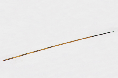 Freccia con punta di legno. Il bastone è ralizzato con pianta di bambù. Rif. bibliografia: Codrington, R.H.: The Melanesians. Studies in their Anthropology and Folk-lore (Oxford, The Clarendon Press, 1891) p.305 Oliver, D.L.: Oceania: The Native Cultures of Australia and the Pacific Islands. Volume I (Honolulu: The University of Hawaii Press, 1989) pp.424-426,437,443,445,448,454.