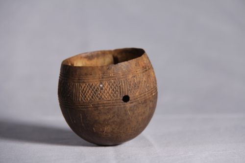Rif. Peabody Museum of Harvard, nr.28-11-50/B4414. Africa, Tanzania, Tanganyka Territory, Tanga. la superficie della scorza di cocco essicata è decorata con alcune linee incise.