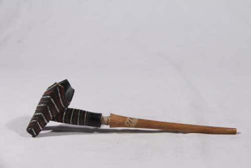 Descrizione etichetta originale: Archivio St. Petrus Claver Sodalität Triest (Sodalizio di San Pietro Claver per le Missioni Africane). Nr. 3142. Anno 1904. Pipa di terracotta dei Baganda industria. Uganda. Africa Equatoriale.