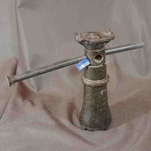 Martinetto a vite munita di testa con due fori incrociati, uno dei quali è impegnto dalla leva di caricamento a sezione circolare. Sopra la testa è imperniata una ghiera girevole a sezione rettangolare con i lati minori rialzati. Il corpo è tronco-conico e presenta alla base quattro denti antiscivolo e, di lato, i resti di un' impugnatura.