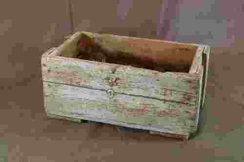 Cassa a forma di parallelepipedo, priva di coperchio, rinforzata con due assi alla base inferiore e nelle due facce laterali.