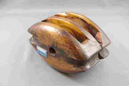 Bozzello in seconda dal singolare profilo a mandorla, ricavato dal pieno per intaglio. Si tratta di un tipo di lavorazione precedente a quella che prevedeva l'unione di più pezzi di legno tramite inchiodatura o imbullonatura.