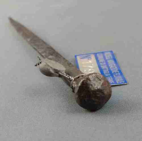 Chiodo a sezione quadrata; la testa presenta un accenno di bugnatura.