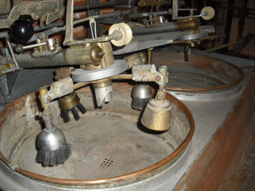 - FUNZIONE E MODALITÀ D'USO tratturaLa vasca veniva riempita d'acqua e portata ad una temperatura di 70-90°C con l'emissione del vapore proveniente da una grossa caldaia. Il compito di riempire i vasconi e di riscaldare l'acqua era demandato al fuochista che arrivava in filanda ben prima che vi giungessero tutti gli altri operai. Quando la #filera# prendeva posto davanti alla bacinella iniziava subito a mettere in ammollo una certa quantità di bozzoli, fra questi anche quelli avanzati dalla giornata precedente. Li scopinava per recuperare le bave e creava un filo. La grossezza variava in base al titolo richiesto. Il filo veniva fatto passare attraverso un guidafilo e legato all'aspo soprastante. Si azionava la macchina che continuava il lavoro di creazione del filo sull'aspo. Uno zeto incrociava i fili di modo che la matassa risultasse di una certa larghezza. Il peso della matassa veniva stabilito in base al tempo di trattura e a seconda della velocità alla quale venivano fatti girare gli aspi. Passato il tempo previsto, quando cioè si stimava che il peso della matassa fosse quello desiderato, un nuovo aspo veniva a sostituire quello pieno, che veniva portato nell'essiccatoio. Alla sera la #filera# doveva #parare su# cioè non immettere più nuovi bozzoli nella vasca, ma proseguire la trattura solo con quelli che si trovavano già in ammollo. Alla fine i bozzoli rimasti venivano recuperati e raffreddati con acqua fredda per essere usati il giorno successivo.