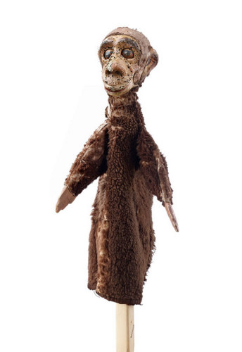 Rappresentazione del personaggio dello Scimmiotto caratterizzato dalla pelliccia vera di montone e il muso fortemente espressivo per il naso dalle grosse narici, la bocca larga, le grandi orecchie e gli occhi sgranati e mobili orizzontalmente.