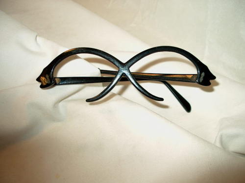 Questa mascherina, in celluloide nera, è il prototipo di questo tipo di occhiali, ideato dal donatore. [Descrizione estratta dal database del Museo dell'Occhiale].