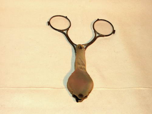 Fassamano a forbice con impugnatura in madreperla e occhiale in argento. L'astuccio-impugnatura funge da custodia quando l'occhiale non viene usato, i supporti sono ondulati e la sua forma segue esattamente quella dell'occhiale quando è chiuso. [Descrizione estratta dal database del Museo dell'Occhiale.]