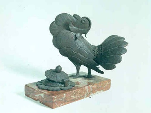 - NOTIZIE STORICO CRITICHE Nel corso degli anni Venti Rizzarda fece una nutrita serie di manufatti in ferro battuto, in forma soprattutto di uccelli ma anche di pesci che, applicati su di una base di marmo, servivano da fermacarte o da calamai. Molti di questi manufatti sono tutt'ora conservati nella Galleria d'arte moderna "Carlo Rizzarda".