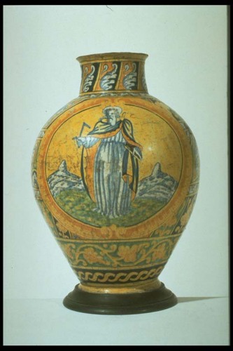 - NOTIZIE STORICO CRITICHE provenienza antiquariale. Il tipo di decorazione rimanda alla manifattura palermitana (bottega dei Lazzaro, cfr. Benini 1985). L' Antoniazzi Rossi raggruppa tutti i vasi con questa e simile decorazione nella manifattura di Casteldurante.