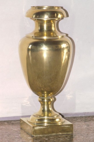 Vaso a forma di anfora in stile Luigi XIV poggiante su base quadrata.