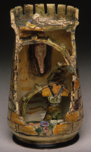 elemento di scacchiera costituito da una torre spaccata; decorazione policroma