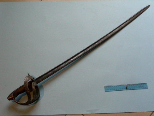 Lama leggermente curva ad un filo; senza sgusciature; dorso rinforzato fin quasi alla punta, simmetrica al centro. Fornimento tipico con guardia e due elsi. Conchiglia per il pollice sul ramo di parata. Cappetta lunga, piatta al vertice, completamente zigrinata e piatta verso la guardia. Bottone a calotta ellittica, avvitato al codolo. Impugnatura liscia.