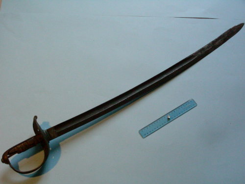 lama curva, ad un solo sguscio sul lato destro a tre quarti della lama; liscio il lato sinistro. Punta simmetrica al centro. Guardia piena ad un solo elso con i tipici sette fori di alleggerimento sul piatto di guardia. Elso di parata, a ricciolo, integrato con la guardia. La cappetta stondata, liscia, ha due orecchie che coprono parzialmente l'impugnatura al centro e la fissano con un traversino. Bottone rotondo avvitato al codolo. Impugnatura sagomata, a settori.