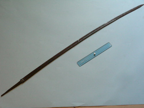 Curva, con sguscio ad entrambi i lati fino a quattro quinti; punta ribassata alla pandura. Conserva il codolo con filetto terminale.