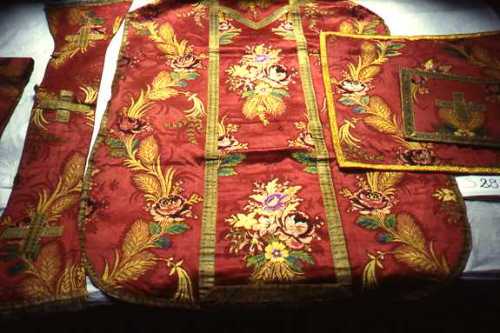 PARAMENTO LITURGICO, pianeta, stola, manipolo, borsa da calice, velo da calice. - Italia (inizio XIX)