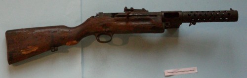 Pistola mitragliatrice; canna forata; mirino in volata e ritto regolabile a un terzo della canna. Leva per la massa battente sul lato destro e alloggiamento del caricatore sul lato sinistro. Presenti il guardamano, il calciolo, due magliette portacinghia e la sicura sopra il grilletto.