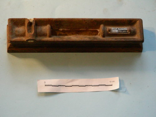 - ISCRIZIONI di fianco alla bolla orizzontale - 1 Strich Ausschlag =0,09 mm pro m - maiuscoli e minuscoli - a stampa su lamina - Tedesco