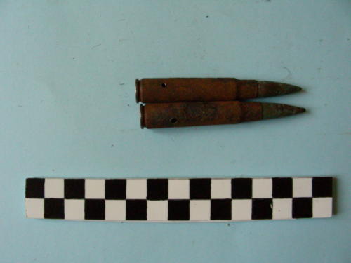 Di forma cilindrica, con fondello e restringimento all'apice del bossolo e proiettile conico.